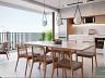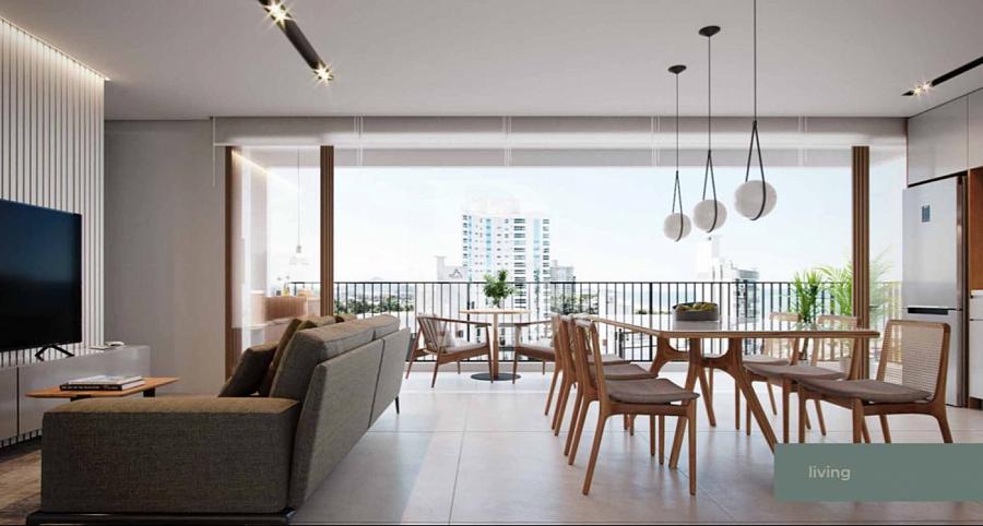 O apartamento será entregue com esquadrias amplas, churrasqueira à carvão, teto com rebaixo em gesso, janela com persiana integrada nas suítes, infra para aquecedor a gás e todo em porcelanato retificado.