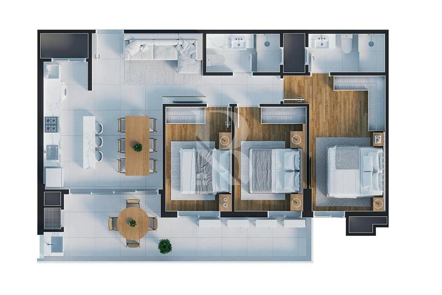Este apartamento de luxo em Balneário Piçarras possui 127m² privativos, distribuídos em uma planta dinâmica e inteligente que proporciona amplitude, praticidade e sofisticação. São 3 dormitórios, sendo 1 suíte master e 2 quartos adicionais, ideais para quem deseja um imóvel funcional, mas com todo o requinte de um projeto de alto padrão.